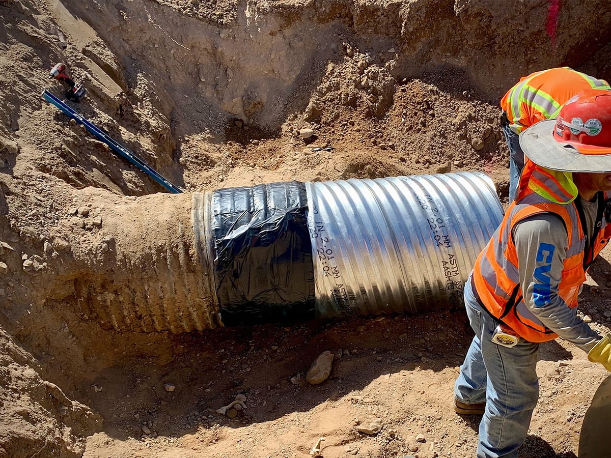 The CSP Coupler’s external, band-style application allowed the contractor crews to work efficiently across a large, linear jobsite without requiring specialized equipment or extended installation time at each joint location.